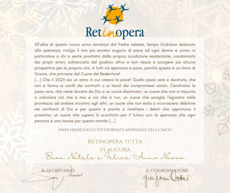 Per qualsiasi evenienza sarà possibile contattare il Coordinatore e il Segretario ai seguenti indirizzi mail: coordinatore@retinopera.it segretario@retinopera.it